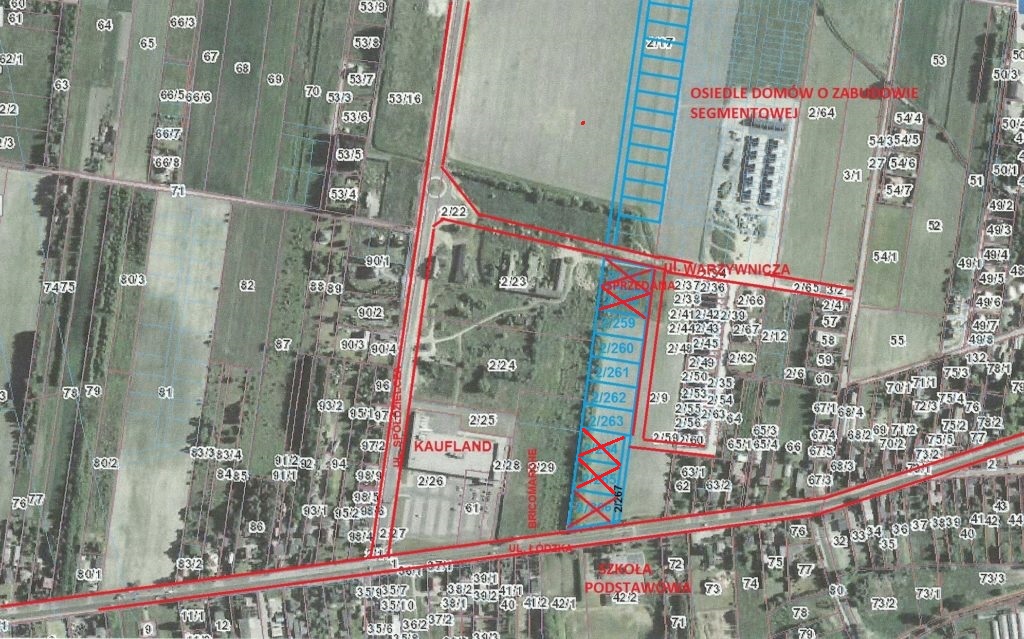 Teren inwestycyjny o powierzchni 9000m2. Podzielony geodezyjnie na 5 działek. Teren znajduje się w Konstantynowie Łódzkim przy ulicy Łódzkiej na pograniczu z Łodzią. Na tym terenie obowiązuje Miejscowy Plan Zagospodarowania Przestrzennego i oznaczony jest jako 2U – teren zabudowy usługowej- usługi komercyjne, w tym usługi opiekuńczo-wychowawcze takie jak przedszkola i żłobki, a także usługi handlu detalicznego (sklepy) o powierzchni sprzedaży do 400m2 na każdej działce lub po scaleniu działek 2x 2000m2. Nadaje się doskonale pod markety spożywcze i markety przemysłowe. W bezpośrednim sąsiedztwie tych działek jest: market Kaufland, market Bricomarche, szkoła podstawowa, przedszkole, stacja paliw, przystanek autobusowy i tramwajowy ( z połączeniem bezpośrednim do Łodzi), osiedle domów jednorodzinnych i zabudowy mieszkaniowej- segmentowej. Przy działce są następujące media: energia elektryczna od 230v do 1,5 KW, gaz ziemny, wodociąg, kanalizacja, telefonia naziemna, telefonia komórkowa.